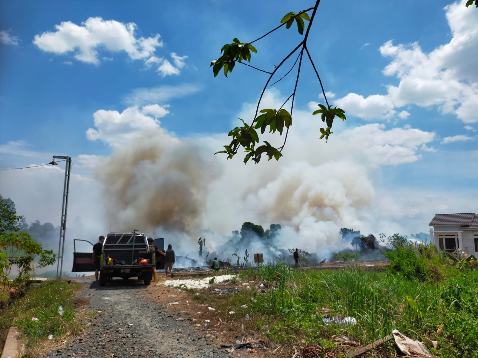 Karena api mulai membesar menjalar mendekati arah rumah warga. Sedangkan di lokasi angin sangat kencang menambah gejolak api.