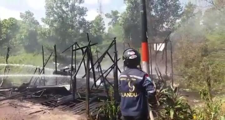 Kebakaran di Jalan Lingkar Selatan Liang Anggang menghabiskan sebuah warung, Jum'at (8/7/2022). Foto: ist