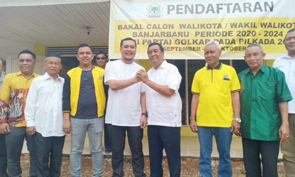 BANJARBARU, Perburuan mendapat dukungan Partai Golkar begitu terasa di Kota Banjarbaru. H-3 sebelum ditutupnya pendaftaran, pasangan Bakal Calon (Balon) Walikota dan Wakil Walikota Banjarbaru, Aditya Mufti Ariffin-AR Iwansyah mengantarkan berkas formulir pendaftaran, Sabtu (12/10) siang. Langkahnya menyusul pasangan incumbent Nadjmi-Jaya yang mendahului sebelumnya.