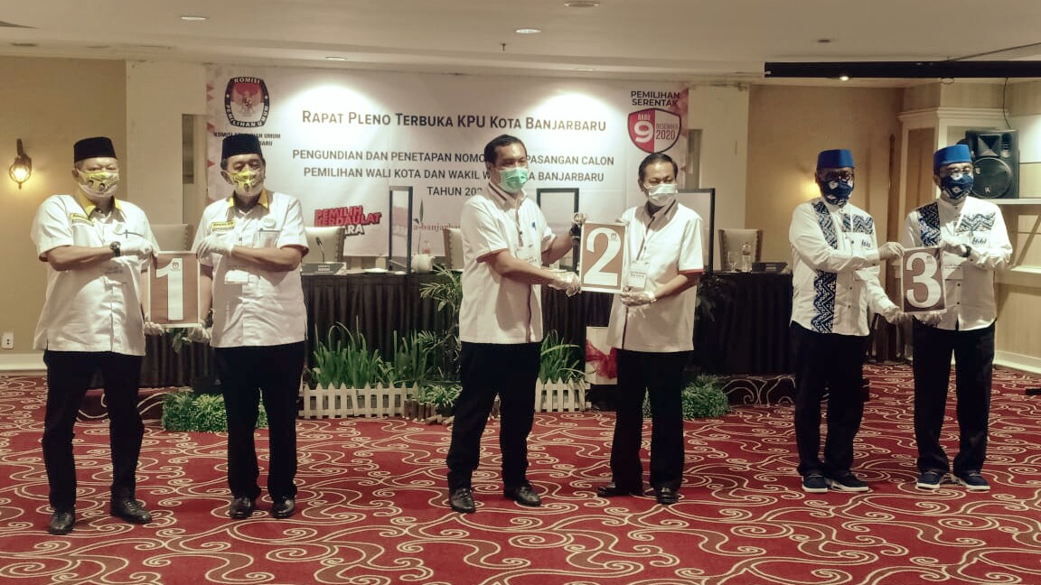 KANALKALIMANTAN.COM, BANJARBARU – Tiga pasangan calon Wali Kota dan Wakil Wali Kota Banjarbaru telah menempati ‘podium’ di panggung Pilkada Banjarbaru sesuai nomor urut yang diperoleh pada Kamis (24/9/2020) malam.