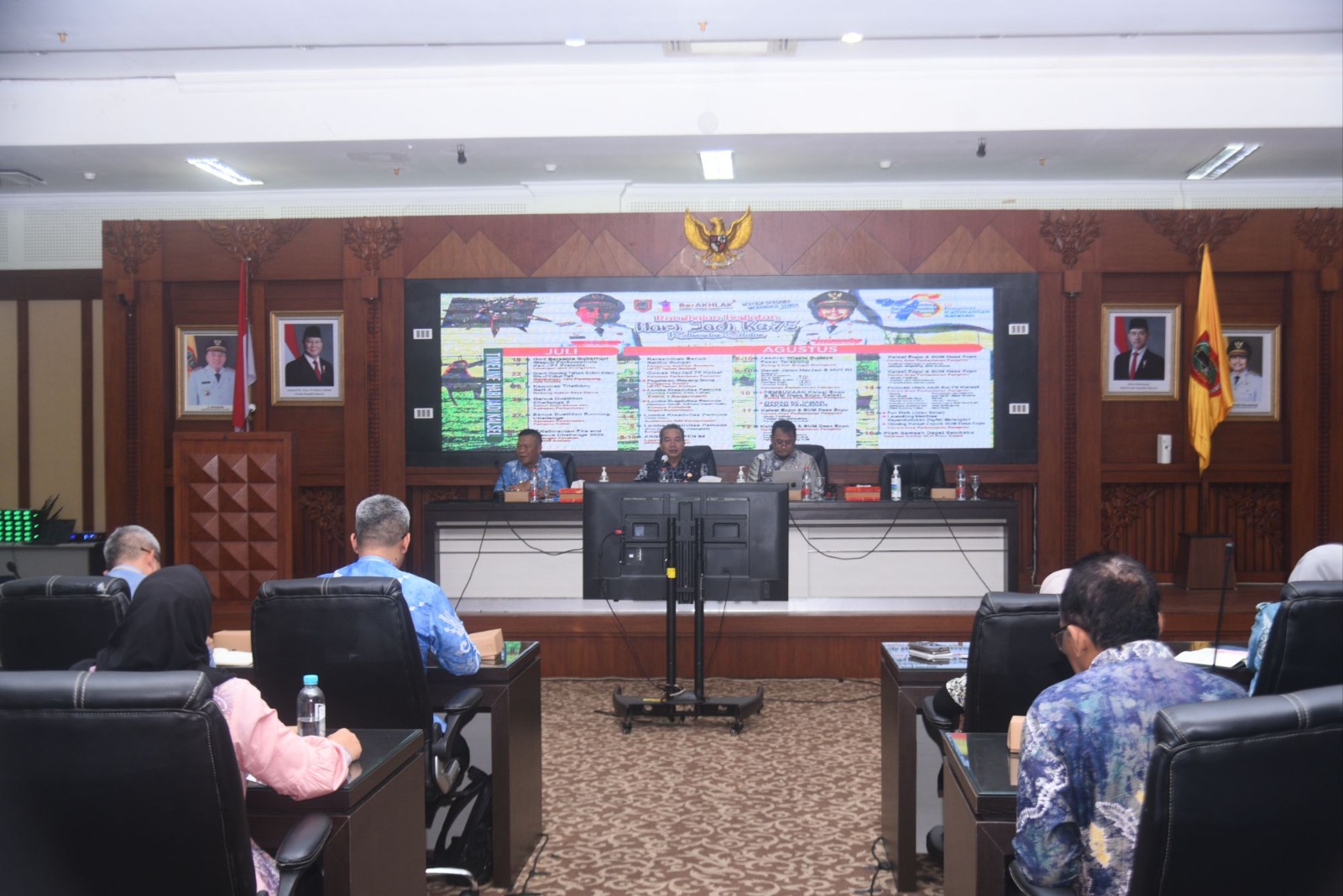 Rapat persiapan digelar di ruang Aberani Sulaiman, lantai 3 kantor Gubernur Kalsel, Kamis (24/7/2025) siang, dipimpin Sekdaprov H Muhammad Syarifuddin dihadiri Kepala Badan Kesatuan Bangsa dan Politik (Kesbangpol) Kalsel, Drs H Heriansyah, dan Kepala Dispora Kalsel, M Fitri Hernadi (Ketua Pelaksana Harjad ke-75 Provinsi Kalsel) serta jajaran Tenaga Ahli Gubernur, dan pimpinan SKPD Provinsi Kalsel.