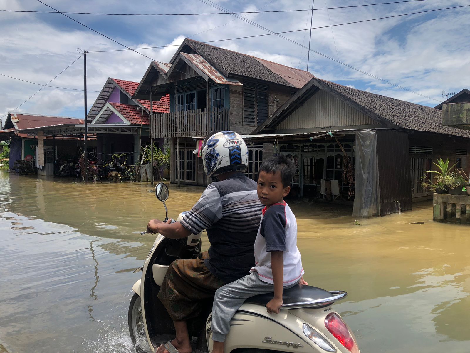 Genangan banjir di Jalan Martapura Lama yang menghambat warga dalam beraktivitas sehari-hari. Foto: Wanda