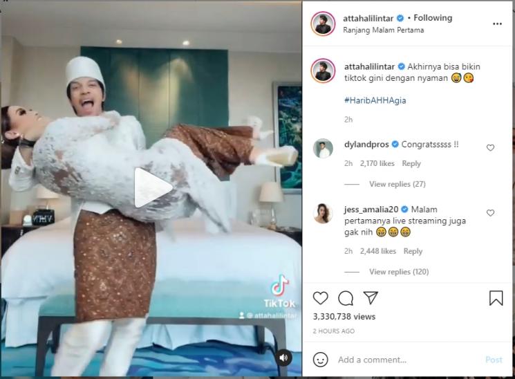 Atta Halilintar dan Aurel Hermansyah pamer video mesra usai menikah. (Instagram/attahalilintar)