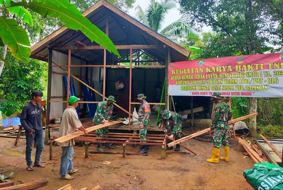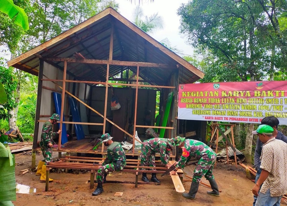 Bedah rumah yang dibantu warga setempat tersebut merupakan program Karya Bakti Kodim 1001/Amuntai-Balangan semester 1 membantu warga masyarakat kurang mampu, yang kondisi rumahnya memprihatinkan.