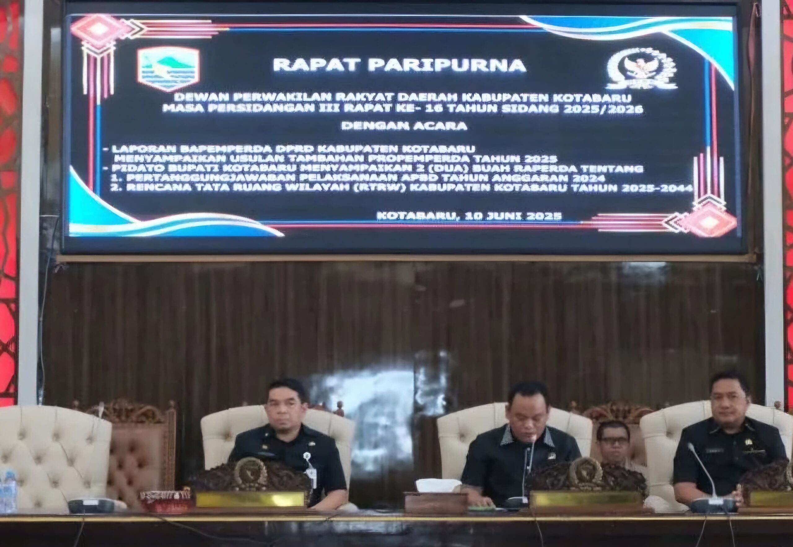KANALKALIMANTAN.COM, KOTABARU – Rapat Paripurna beragendakan Program Pembentukan Peraturan Daerah (Propemperda) tahun 2025 digelar oleh