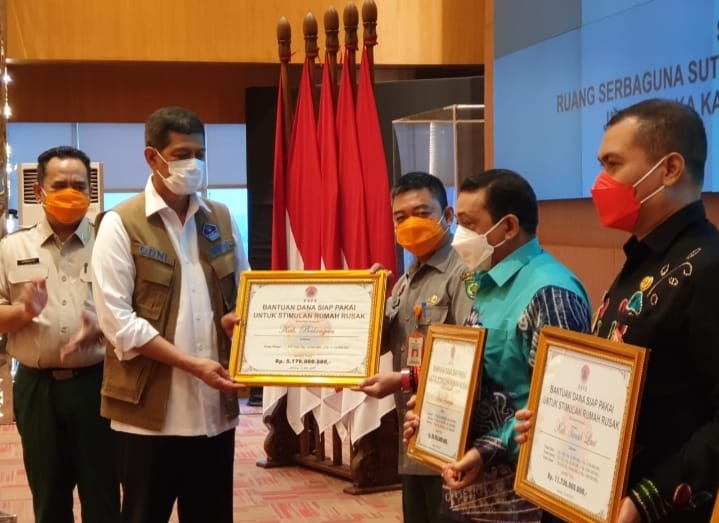 KANALKALIMANTAN.COM, PARINGIN – Kepala Badan Penanggulangan Bencana Daerah (BPBD) Kabupaten Balangan Alive Yoesfah Love menerima bantuan dana siap pakai untuk stimulan rumah rusak dari BNPB, Senin (24/5/2021) di Jakarta.