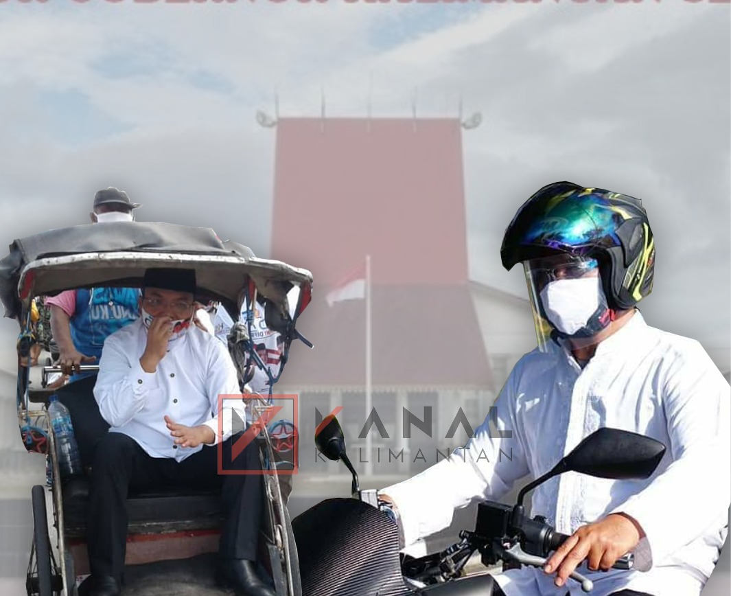KANALKALIMANTAN.COM, BANJARBARU – Pilgub Kalsel memasuki babak baru. Dua pasangan resmi menyandang calon di pertaruhan akbar menuju kursi gubernur, pasca pendaftaran di KPU Kalsel, Sabtu (5/9/2020) tadi pagi. Tarung Head to head antara incumbent Sahbirin Noor melawan sang penantang Denny Indrayana akan menentukan kepemimpinan Banua ke depan. Siapa yang akan menang, Sahbirin yang daftar menggunakan ojek motor, atau Denny yang naik becak?