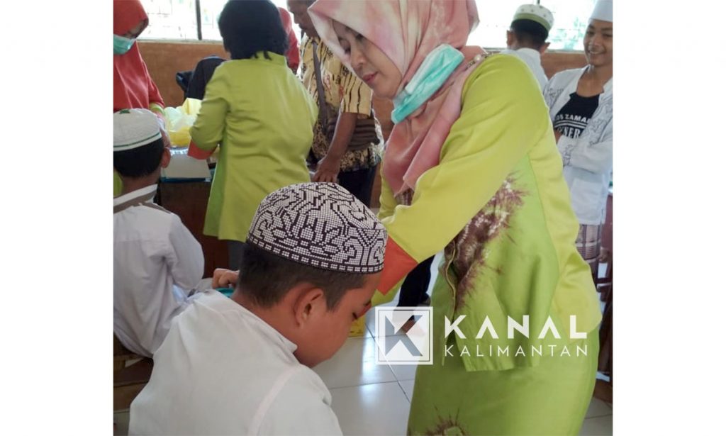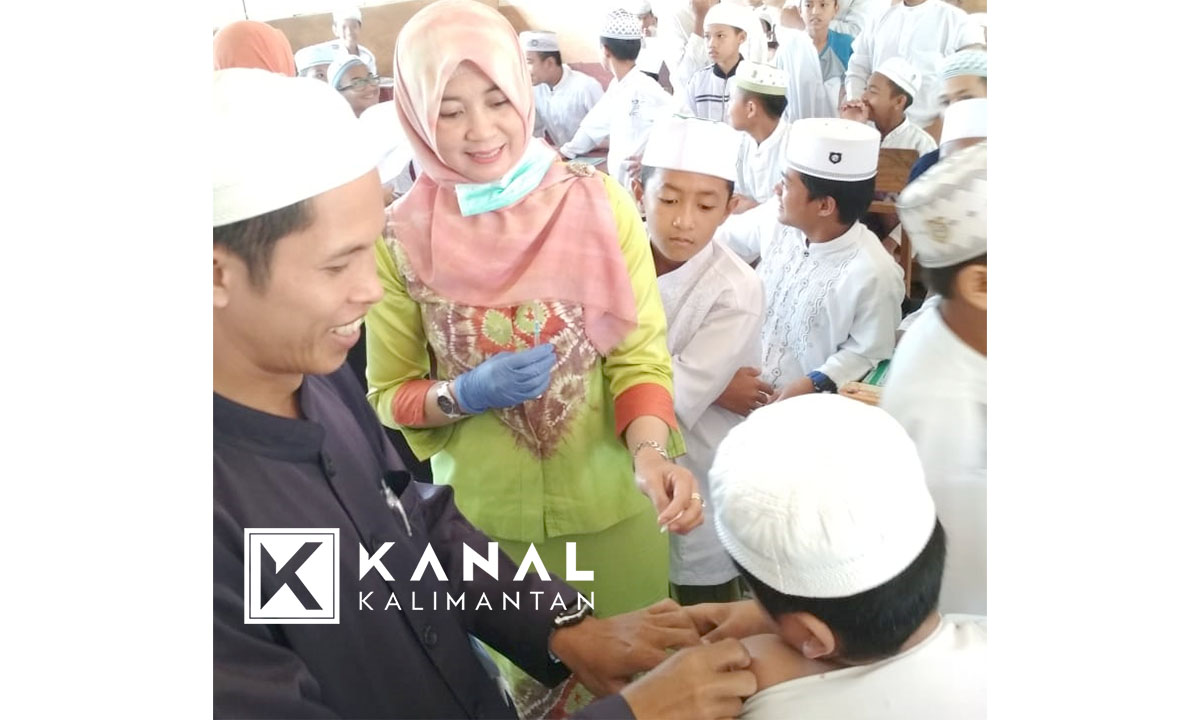 Imunisasi MR campak dan rubella dilakukan petugas Dinas Kesehatan Kota Banjarbaru di Pondok Pesantren Waratsatul Fuqaha, Jalan Sumber Ilmu, Guntung Upih RT 24 RW 05 Kelurahan Kemuning, Kecamatan Banjarbaru Selatan.