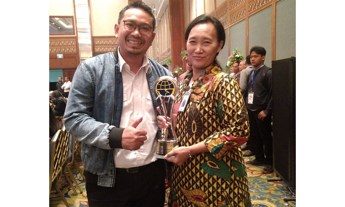 General Manager Bandara Syamsudin Noor Banjarmasin MMA Indah Preastuty didampingi oleh Airport Operation and Services Department Head Ruly Artha langsung menerima penghargaan sebagai kategori prima madya.