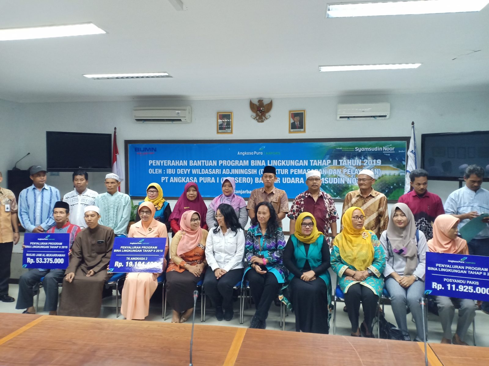 BANJARBARU, Suasana bulan Ramadhan menjadi kesempatan untuk berbagi dan membantu terhadap sesama. Seperti halnya, penyerahan bantuan program bina lingkungan tahap II Tahun 2019 oleh PT Angkasa Pura I Persero Bandar Udara Syamsudin Noor, Kamis, (16/5) siang.
