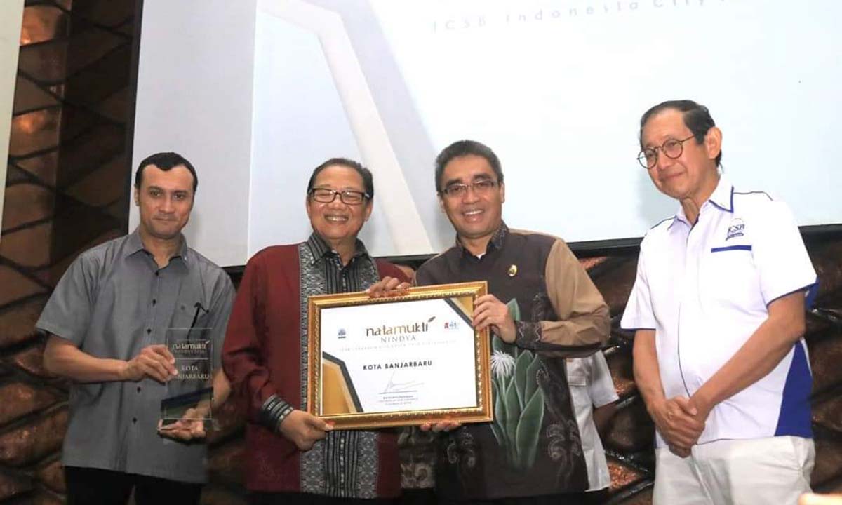BANJARBARU, Wakil Walikota Banjarbaru Darmawan Jaya Setiawan menerima penghargaan Natamukti Nindya dari Indonesia Council of Small Business (ICSB) dan Kementerian Koperasi dan Usaha Kecil Menengah (KUKM), Kamis (15/11). Penghargaan diserahkan langsung oleh Menteri Koperasi dan Usaha Kecil dan Menengah (KUKM) RI Anak Agung Gde Ngurah Puspayoga.