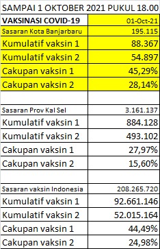 Banjarbaru Target Capai 50 % Vaksinasi Pertengahan Oktober
