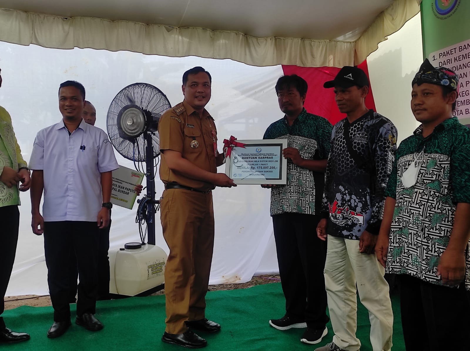 “Ini merupakan penyerahan bantuan sarana dan prasarana perikanan di Kota Banjarbar, dan bantuan pemerintah pusat peralatan sistem bioflok budidaya ikan nila kepada Pokdakan Bataan Sukses Bersama,” katanya.