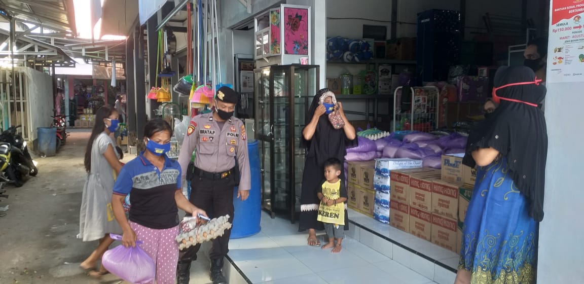 KANALKALIMANTAN. COM, PULANG PISAU – Warga Desa Bahaur Tengah Kecamatan Kahayan Kuala, Kabupaten Pulang Pisau mulai menerima Bantuan Pangan Non Tunai (BPNT), Rabu (13/5/2020). Pendistribusian BPNT berupa beras, telur, bawang merah, bawang putih, bagi warga dipantau pihak kepolisian.