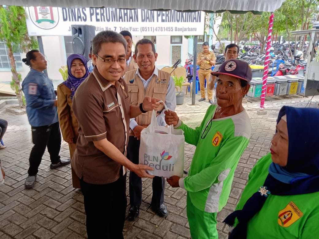 BANJARBARU, Jika sebelumnya petugas kebersihan -pasukan kuning- yang menerima bantuan sembako, kali ini giliran puluhan petugas pertamanan -pasukan hijau- Dinas Perumahan dan Permukiman (Disperkim) Kota Banjarbaru menyambut kegembiraan Hari Listrik Nasional ke-74.