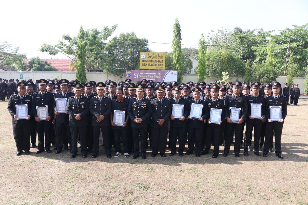 BANJARBARU, Peringatan Hari Sumpah Pemuda tahun 2019, Polres Banjarbaru memberikan penghargaan kepada masyarakat umum yang telah membantu tugas kepolisian. Penghargaan juga diberikan kepada 86 personil Polres Banjarbaru yang memberikan respon cepat terhadap laporan masyarakat melalui aplikasi Siharat Polres Banjarbaru, Senin (28/10).