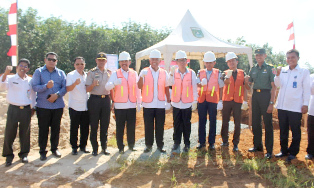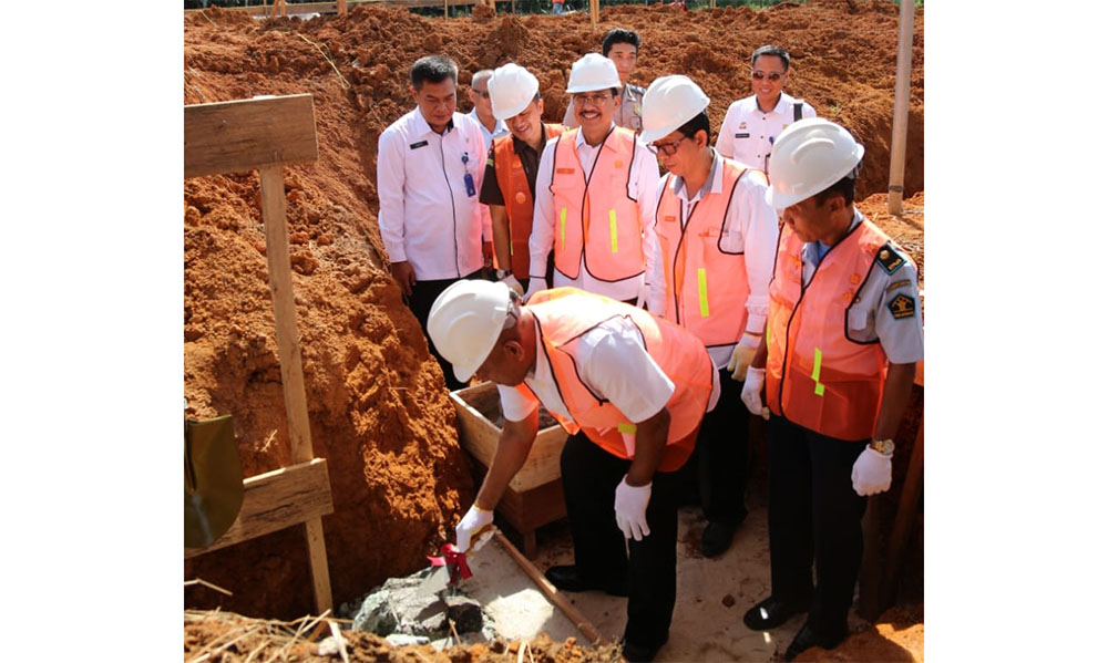 Acara peletakan batu pertama dihadiri  Asisten Bidang Ekonomi, Keuangan dan Pembangunan Kabupaten Tanah Bumbu Alvian Noor, unsur Forkopinda Tanah Bumbu.