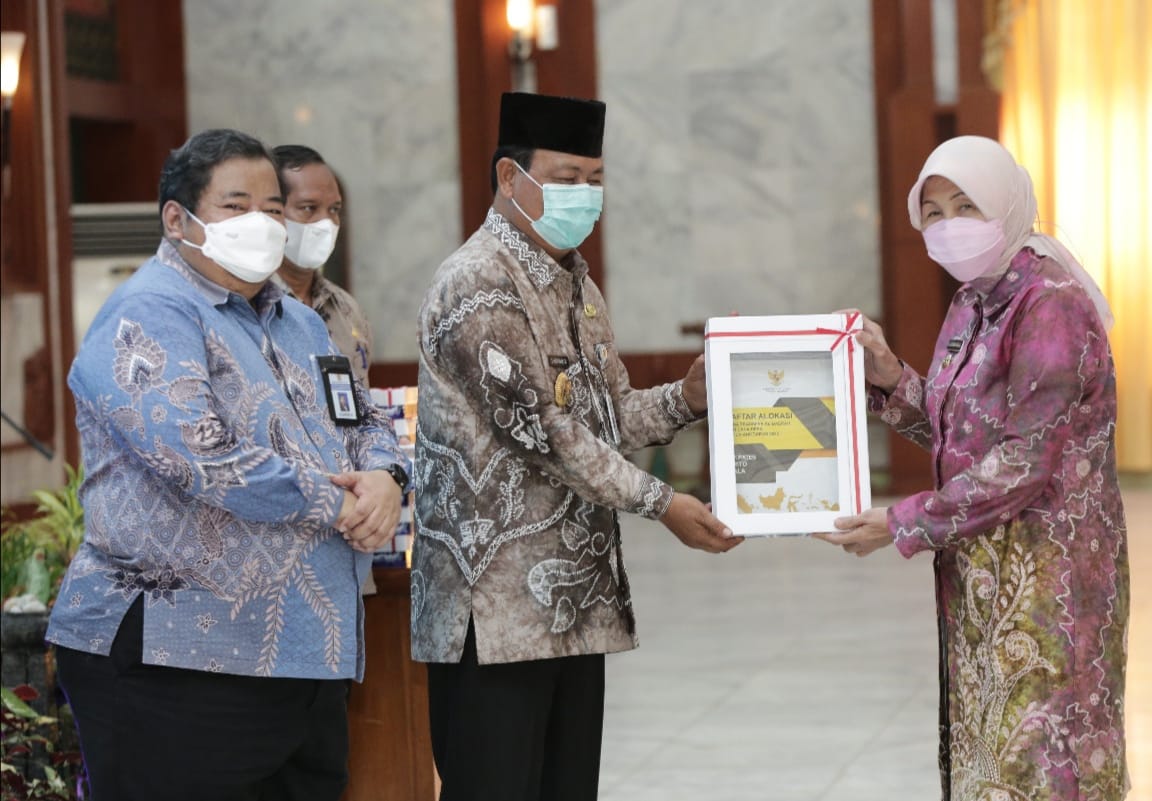 KANALKALIMANTAN.COM, MARABAHAN– Kabupaten Barito Kuala (Batola) raih peringkat 1 kinerja penyaluran Dana Alokasi Khusus (DAK) fisik se-Kalsel tahun 2021. Begitu saat berlangsung di Mahligai Pancasila Banjarmasin, Gubernur Kalimantan Selatan (Kalsel) Sahbirin Noor menyerahkan Daftar Isian Pelaksanaan Anggaran (DIPA) petikan dan Buku Daftar Alokasi Transfer ke Daerah dan Dana Desa (TKDD) Tahun Anggaran (TA) 2022 serta penghargaan kinerja penyaluran DAK, kinerja penyaluran Dana Desa Tahun 2021 dan penghargaan kinerja pelaksanaan anggaran tahun 2021, Jumat (03/11/2021).