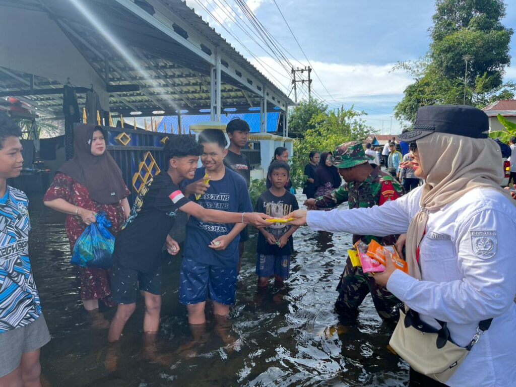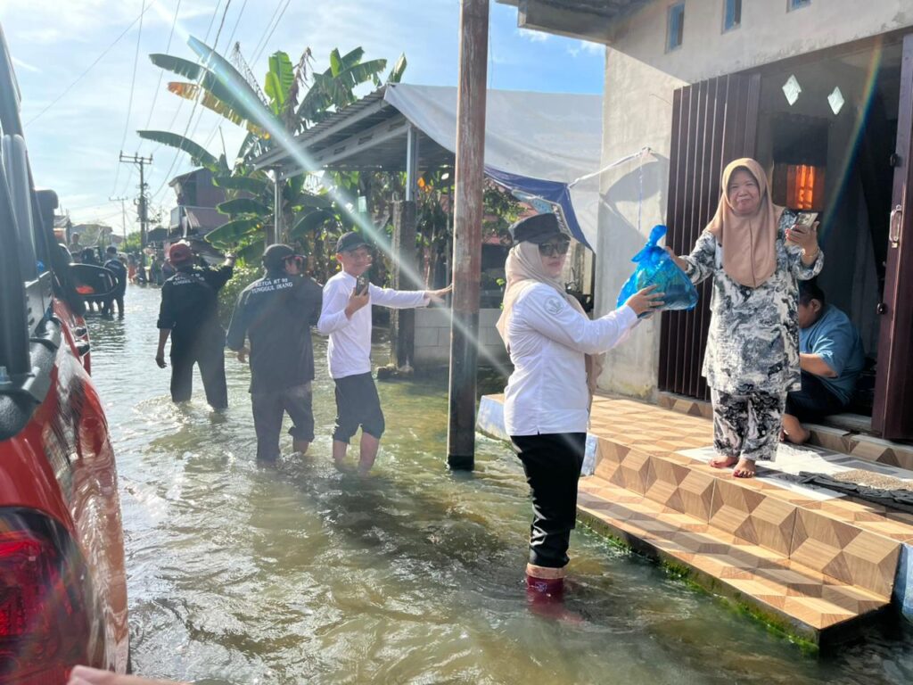 Bersama jajaran bupati turun langsung ke lapangan. Tidak peduli kondisi banjir dia berjalan menerobos genangan air guna melihat langsung kondisi masyarakat dan mendistribusikan bantuan logistik kepada warga di sejumlah desa terdampak.