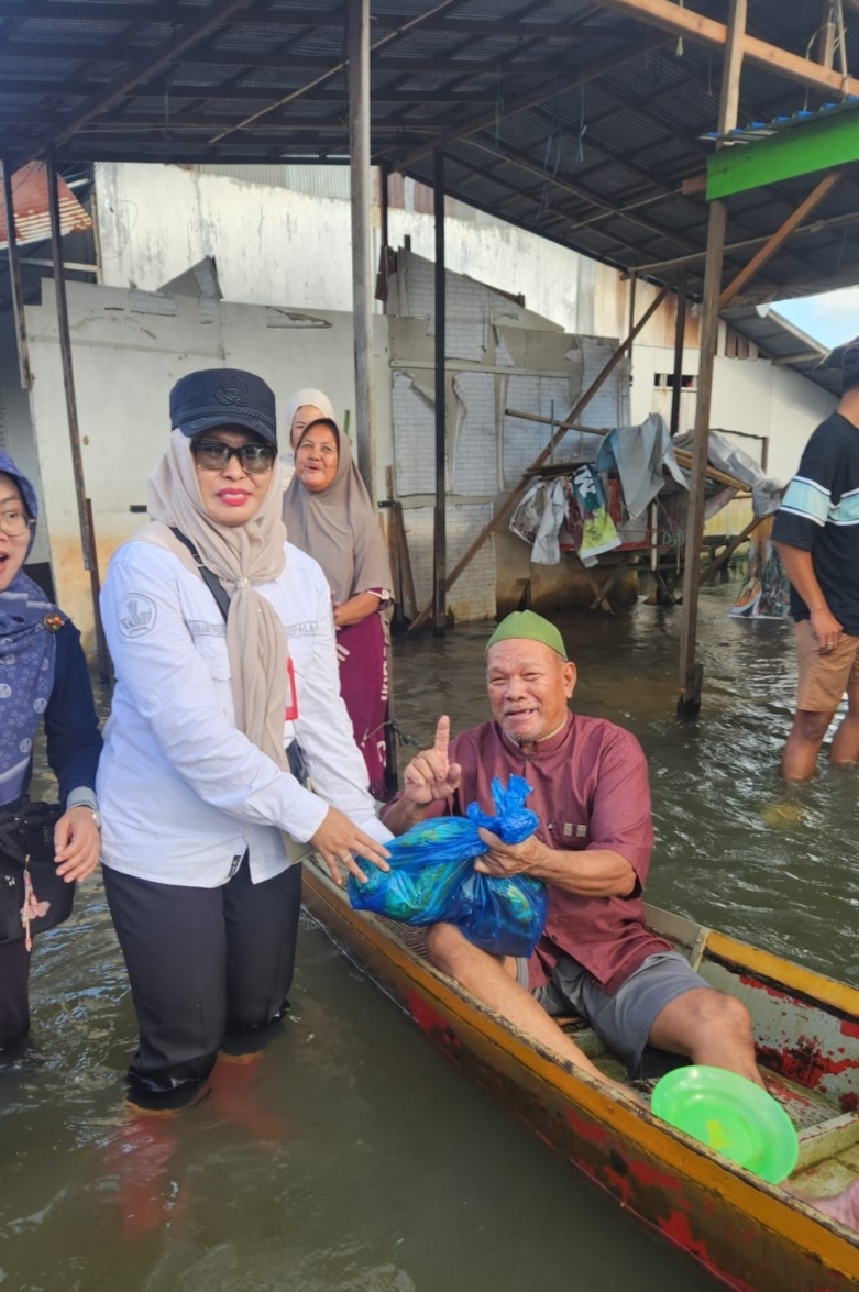 Destayani mengungkapkan rasa haru dan terima kasih atas kehadiran langsung Bupati Banjar beserta jajaran di tengah kondisi banjir,.