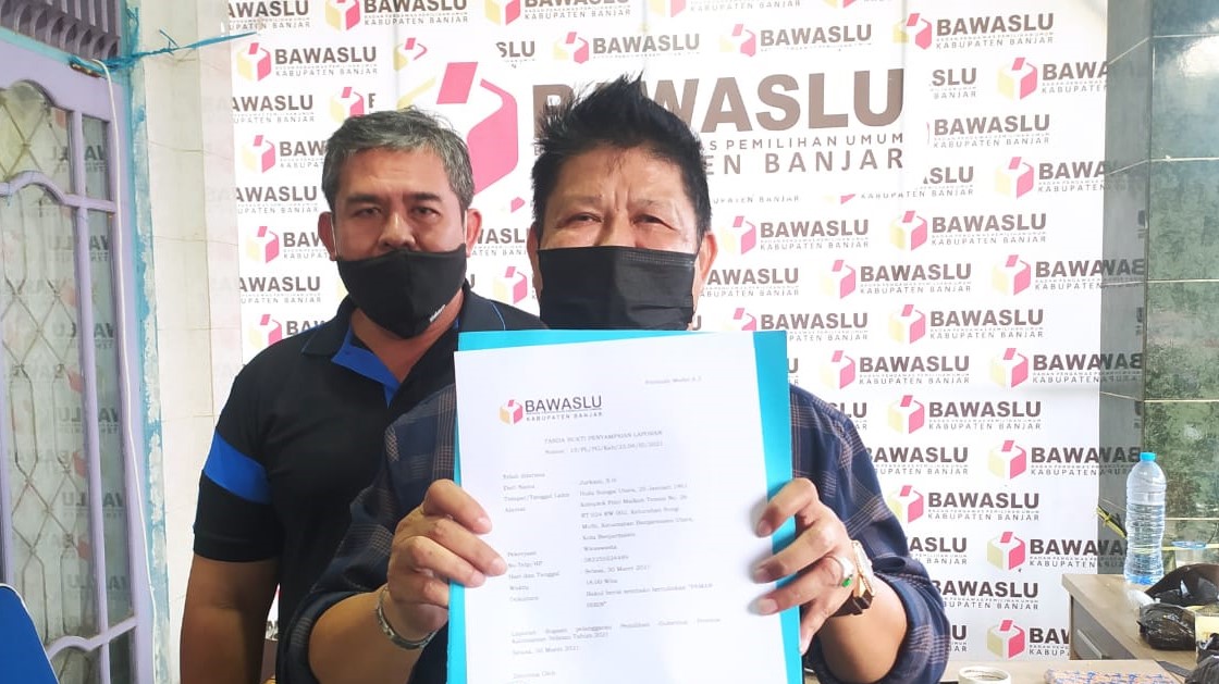 “Mereka datang ke sini untuk menyampaikan barang bukti sembako yang dikemas dalam bakul yang diduga dibagikan oleh Paslon lain di kawasan Kecamatan Martapura. Alhamdulillah kami terima laporan yang bersangkutan pada hari ini dan untuk selanjutnya kami akan lakukan proses kajian awal, baik keterpenuhan surat formil materil dan keterangan yang lain,” jelasnya.