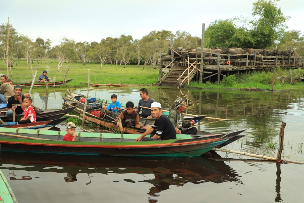 Menariknya acara syukuran tersebut dilakukan langsung di dekat kandang kerbau rawa atau ‘Kalang Hadangan’ dalam bahasa Banjar yang dihadiri oleh tokoh masyarakat, perangkat desa, camat dan warga setempat menggunakan kelotok atau perahu bermotor.
