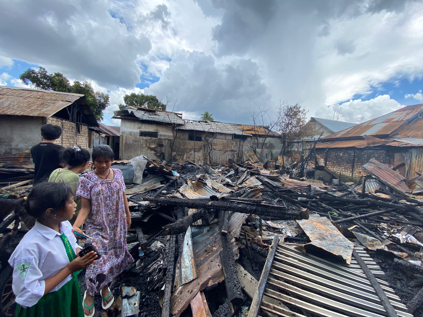 “Barang-barang elektronik, perabot habis semua,” ujar Rasmo, keluarga pemilik bedakan yang terbakar.