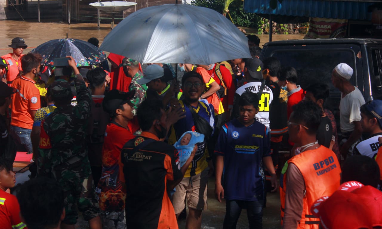 Evakuasi pengungsi korban banjir di Kabupaten Banjar. Foto: kanalkalimantan/andy