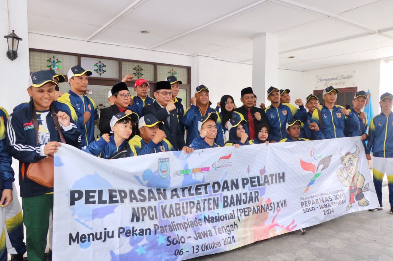 KANALKALIMANTAN.COM, MARTAPURA – Pjs Bupati Banjar, Akhmad Fydayeen melepas 24 atlet dan 7 pelatih/official National Paralympic Committee Indonesia (NPCI) Kabupaten Banjar di Mahligai Sultan Adam Martapura, Selasa (1/10/2024) pagi.