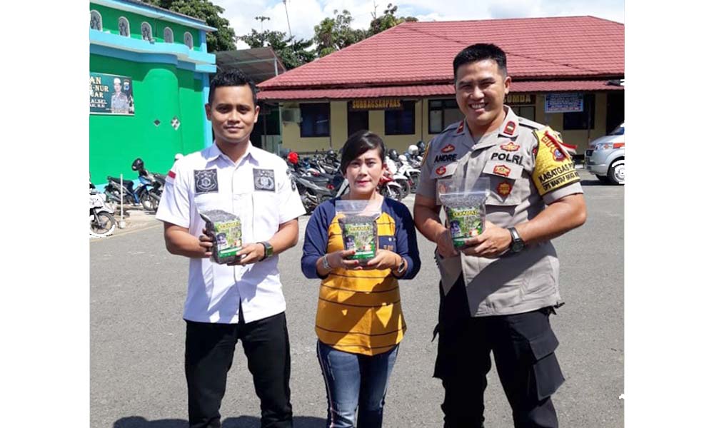 Saat menyerahkan pesanan beras merah keramat, lanjut Lilik, sempat didokumentasikan. Foto bersama Kapolsek Sungai Pinang dan Pambakal Paramasan Atas.