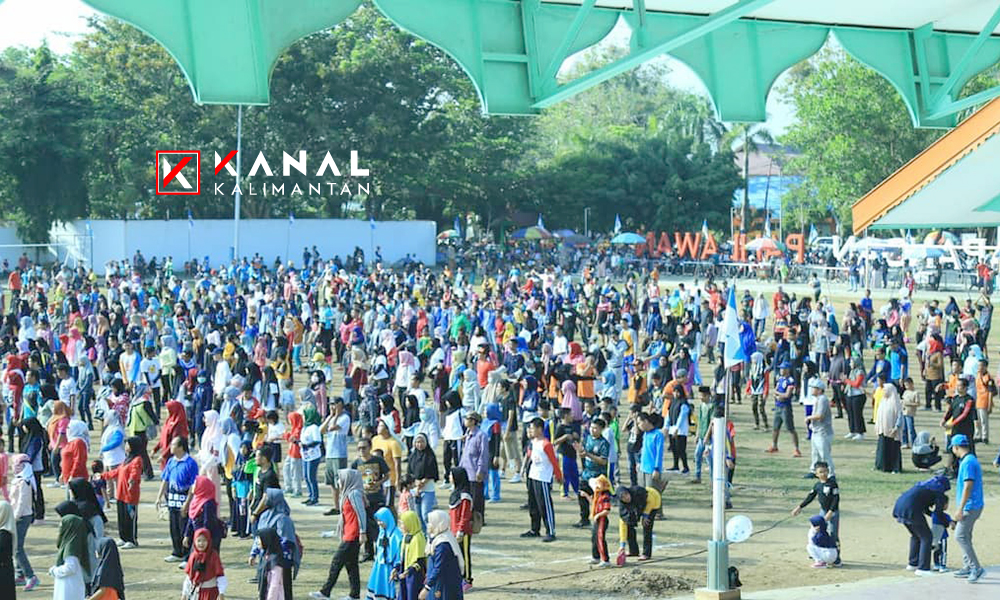 AMUNTAI, Ribuan masyarakat antusias mengikuti kegiatan senam sehat berhadiah dalam rangka memeriahkan HUT KNPI ke-46 tahun 2019 di Kabupaten Hulu Sungai Utara (HSU), Minggu (28/7) di lapangan Pahlawan Amuntai.