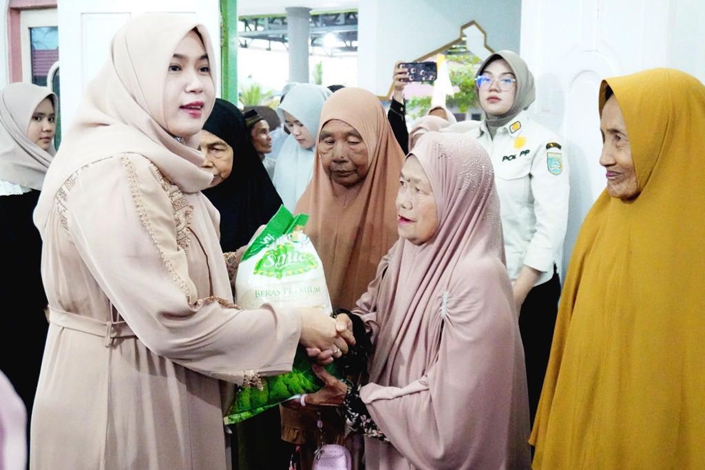 Bantuan paket sembako kepada 5 lansia laki-laki dan penyerahan bantuan dari Ketua TP PKK Hj Nurgita Tiyas kepada 5 perempuan penerima manfaat.