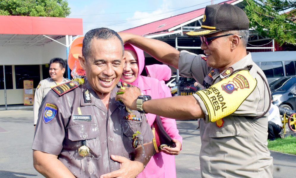 Beri Kenaikan Pangkat, Wakapolres HSU Mandikan Anggotanya dengan Air Kembang