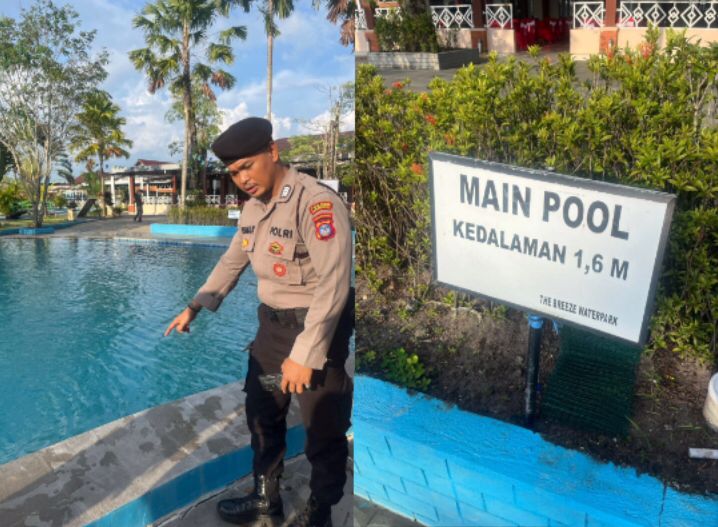 Lokasi tenggelam seorang pelajar SD laki-laki asal Batibati di wahana kolam renang The Breeze Water Park, Senin (9/6/2025) sore. Foto: Humas Polres Banjarbaru