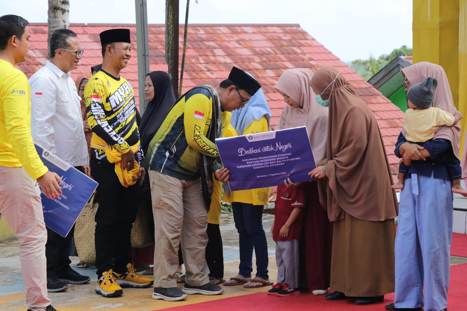 BI Kalsel menyerahkan bantuan Program Sosial Bank Indonesia (PSBI) untuk penanganan stunting di Kabupaten Kotabaru. Penyerahan bantuan dilakukan pada saat kegiatan Turdes Kemerdekaan Bergerak Lintas Beribu Sungai Banua di SMAN 2 Kotabaru, Senin (7/8/2023) siang.