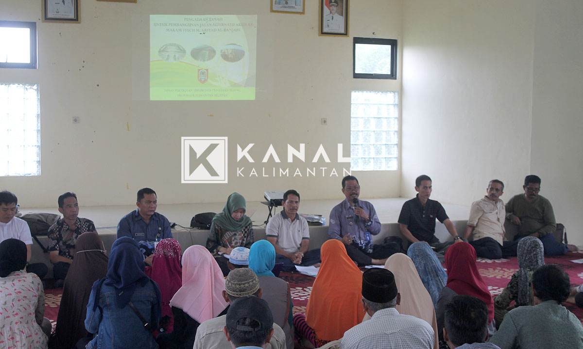 MARTAPURA, Guna menyamakan presepsi terhadap warga terkait rencana pembebasan lahan pengadaan tanah untuk pembuatan jalan alternatif menuju makam Syekh Muhammad Arsyad Al-Banjari (Datu Kelampayan), Desa Kelampayan, Kecamatan Astambul, Kabupaten Banjar, Dinas Pekerjaan Umum dan Penataan Ruang (PUPR) Provinsi Kalimantan Selatan melakukan sosialisasi kepada masyarakat Martapura Timur, Jumat (29/6).