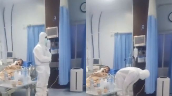 “Terharu, tenaga kesehatan di salah satu RS swasta di Kabupaten Bogor ini mengimami pasiennya yang sedang dirawat karena covid,” tulis keterangan video itu, dikutip Suara.com.