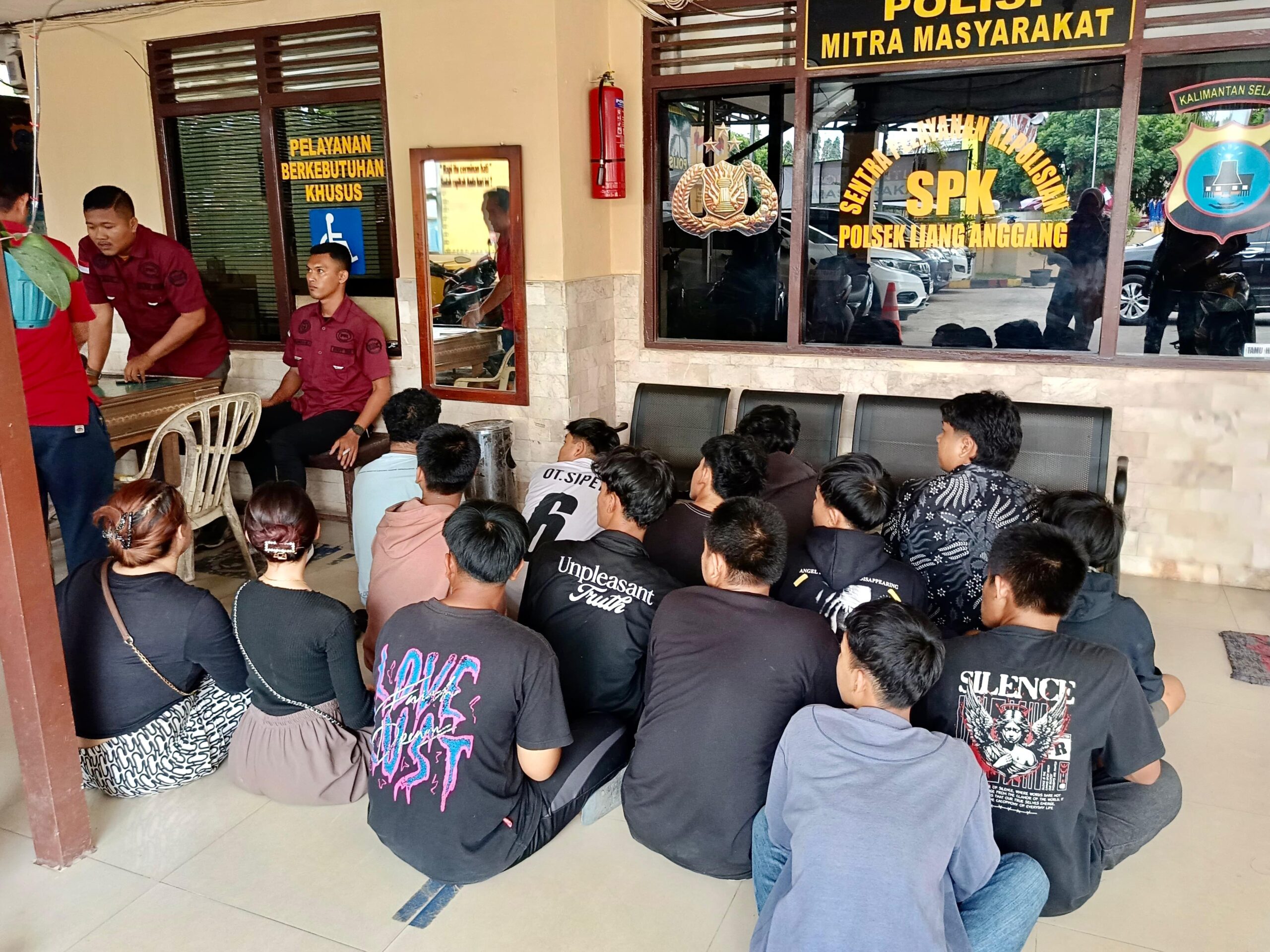 KANALKALIMANTAN.COM, BANJARBARU – Sedikitnya 15 remaja tak berkutik saat berada di kantor Kepolisian Sektor (Polsek) Liang Anggang, Jumat (8/8/2025) siang.