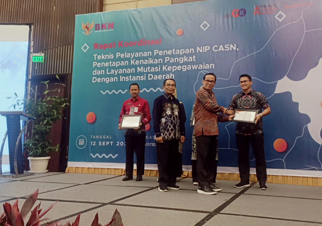 BKPSDM Balangan raih peringkat pertama Kantor Regional VIII BKN Award untuk percepatan layanan pengangkatan, layanan kenaikan pangkat, dan layanan pensiun kategori kabupaten/kota di Provinsi Kalimantan Selatan. Foto: mcbalangan
