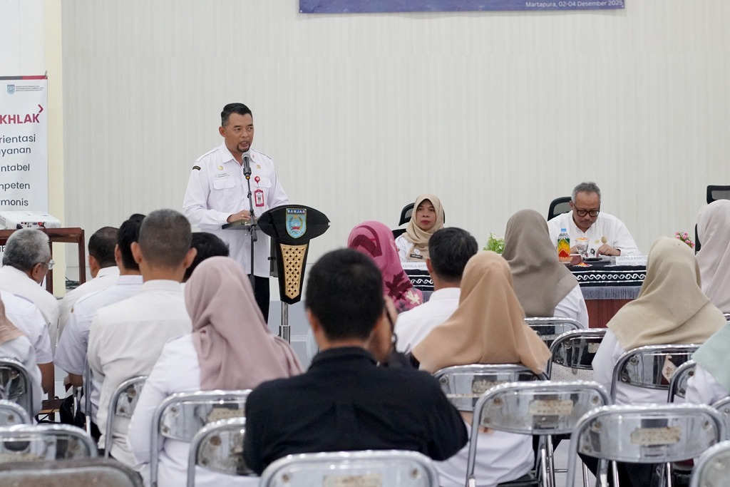 KANALKALIMANTAN.COM, MARTAPURA – Sekretaris Daerah Kabupaten Banjar H Yudi Andrea membuka Bimbingan Teknis Perhitungan Penilaian IPASN dan Teknik Penginputan Data Realisasi Pengembangan Kompetensi Teknis di lingkungan Pemkab Banjar, di Aula BKPSDM Martapura, Rabu (3/12/2025) pagi.