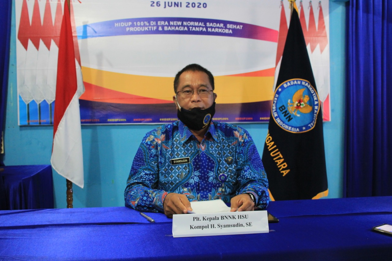 KANALKALIMANTAN.COM, AMUNTAI– Kepala Badan Narkotika Nasional Kabupaten (BNNK) Hulu Sungai Utara (HSU) bersama pejabat Forkopimda ikuti jalannya peringatan Hari Anti Narkotika Internasional (HANI) pada Jumat (26/6/2020). Peringatan HANI dilakukan secara virtual yang juga diikuti oleh Wakil Presiden Republik Indonesia, KH Ma’ruf Amin.