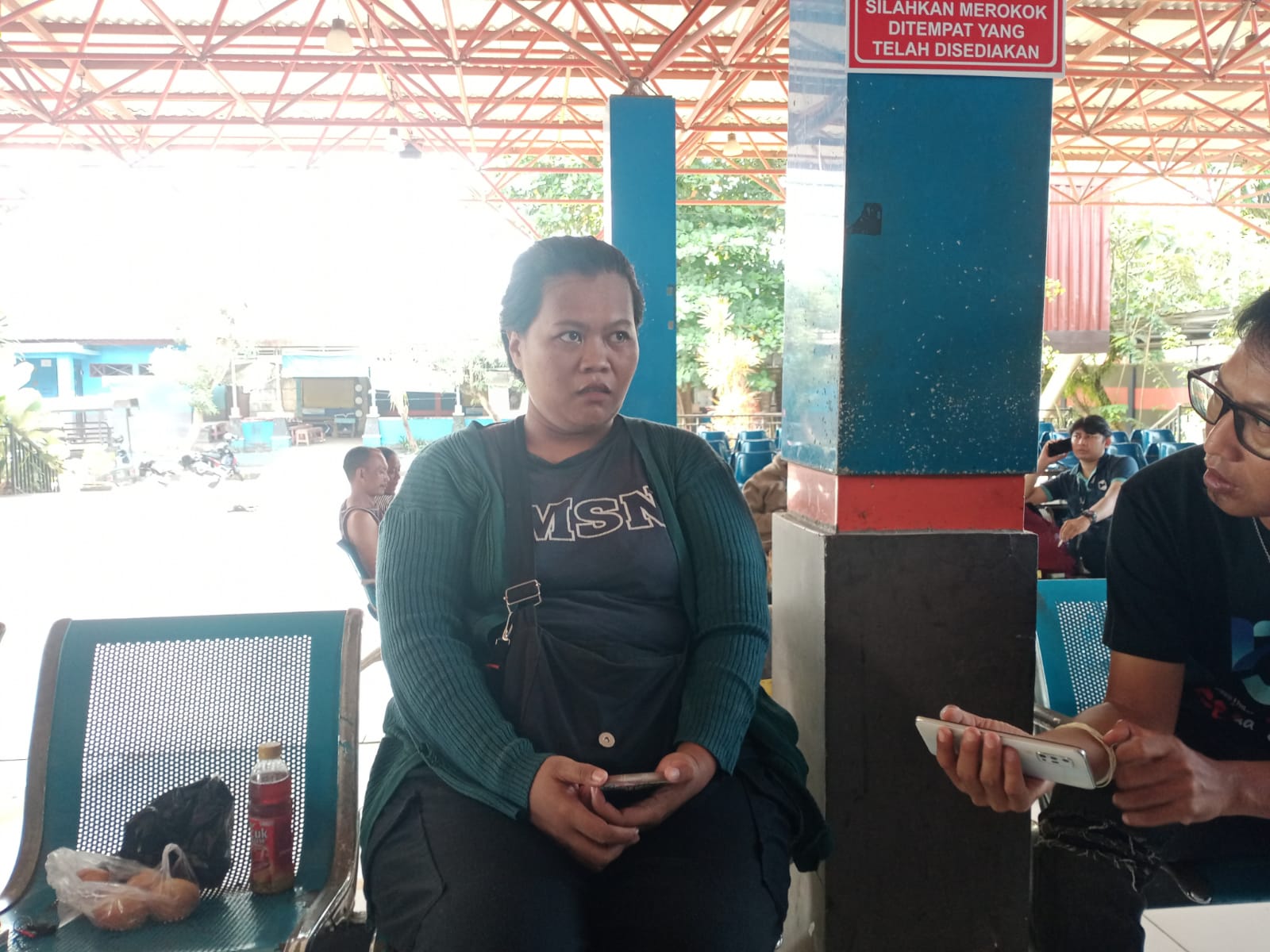 Rini Septiani, sudah berada di ruang tunggu Pelabuhan Trisakti Banjarmasin. Dia mengaku sudah dua kali bolak balik ke pelabuhan menunggu kapal sandar yang mengevakuasi penumpang dan kru KM Niki Sejahatera.
