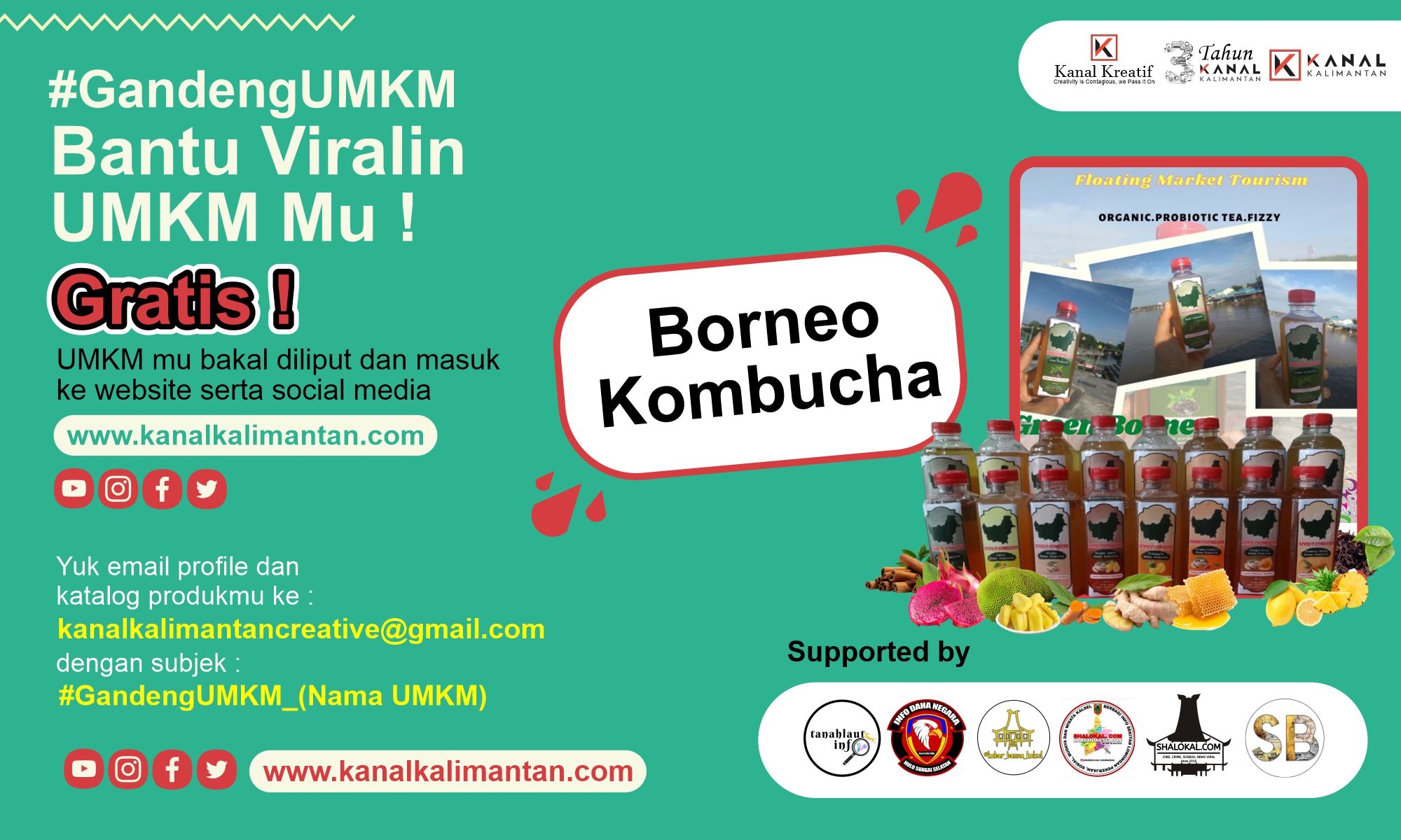 Untuk bergabung dalam program ini, para pelaku UMKM tinggal mengirim profile dan katalog ke email: kanalkalimantancreative@gmail.com. (Selengkapnya bisa dilihat pada infografis, Red).