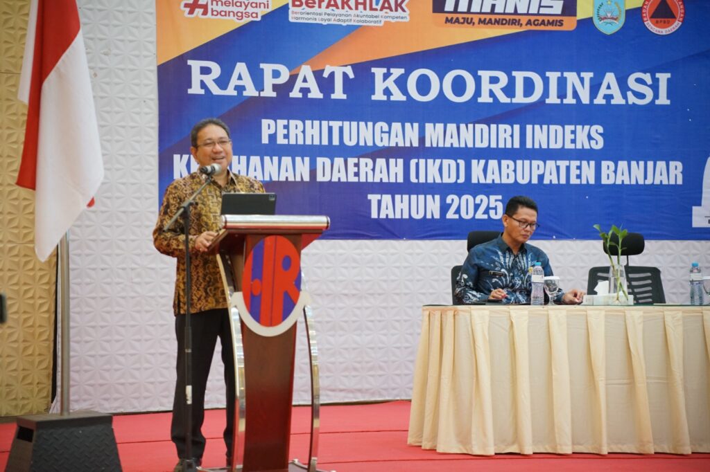 KANALKALIMANTAN.COM, BANJARBARU – Guna menyiapkan dasar perencanaan program dan penganggaran pembangunan Kabupaten Banjar untuk tahun 2026, Badan Penanggulangan Bencana Daerah (BPBD) Kabupaten Banjar menggelar Rapat Koordinasi (Rakor) Perhitungan Mandiri Indeks Ketahanan Daerah (IKD) tahun 2025 di Hotel Roditha Banjarbaru, Kamis (24/7/2025) pagi.
