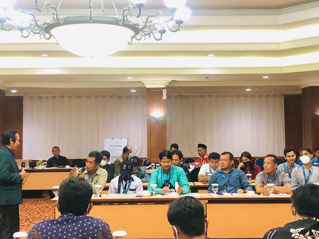 Pembelajaran materi, salah satunya disampaikan Dr Ir Hariyadi dari Institute Pertanian Bogor, dengan tujuan pemberian materi sebagai peningkatan pemahaman regulasi dan kebijakan perkebunan bagi petani sawit.