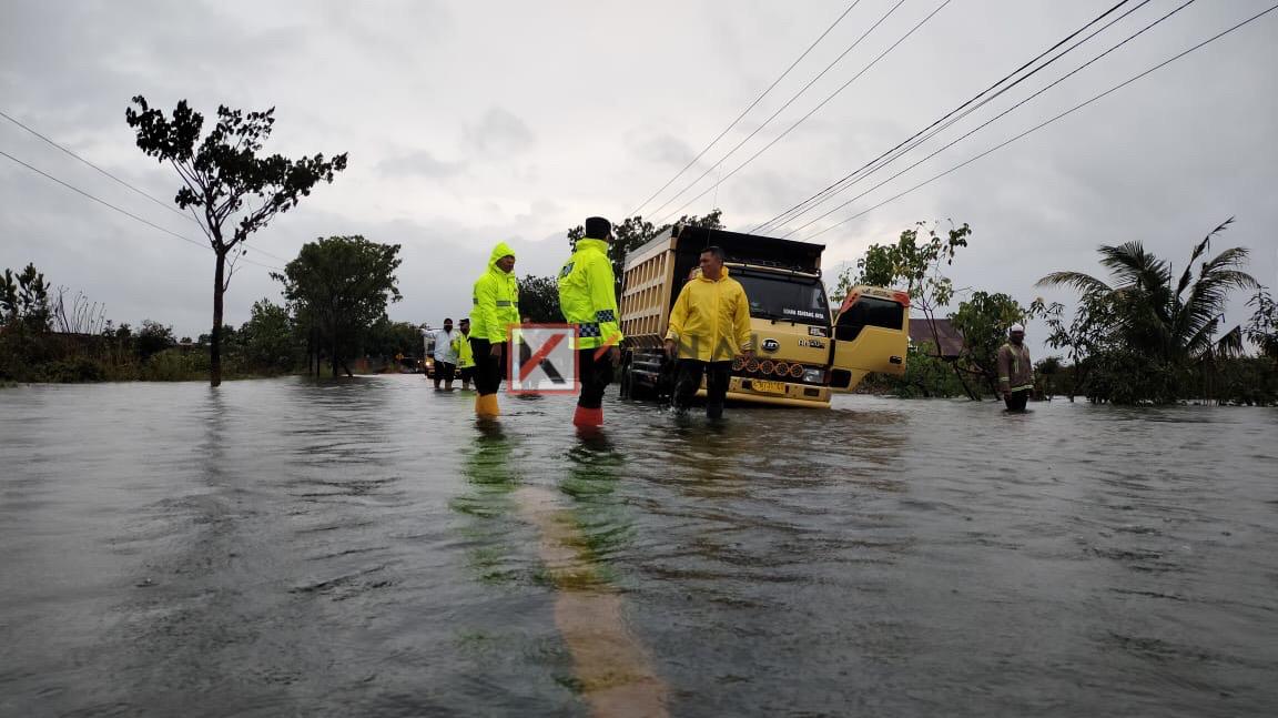“Awalnya hanya kendaraan roda dua yang dilarang melintas. Namun dengan ketinggian debit air seperti ini, maka mobil-mobil jenis sedan dan SUV juga kami larang melintas,” beber AKBP Doni.