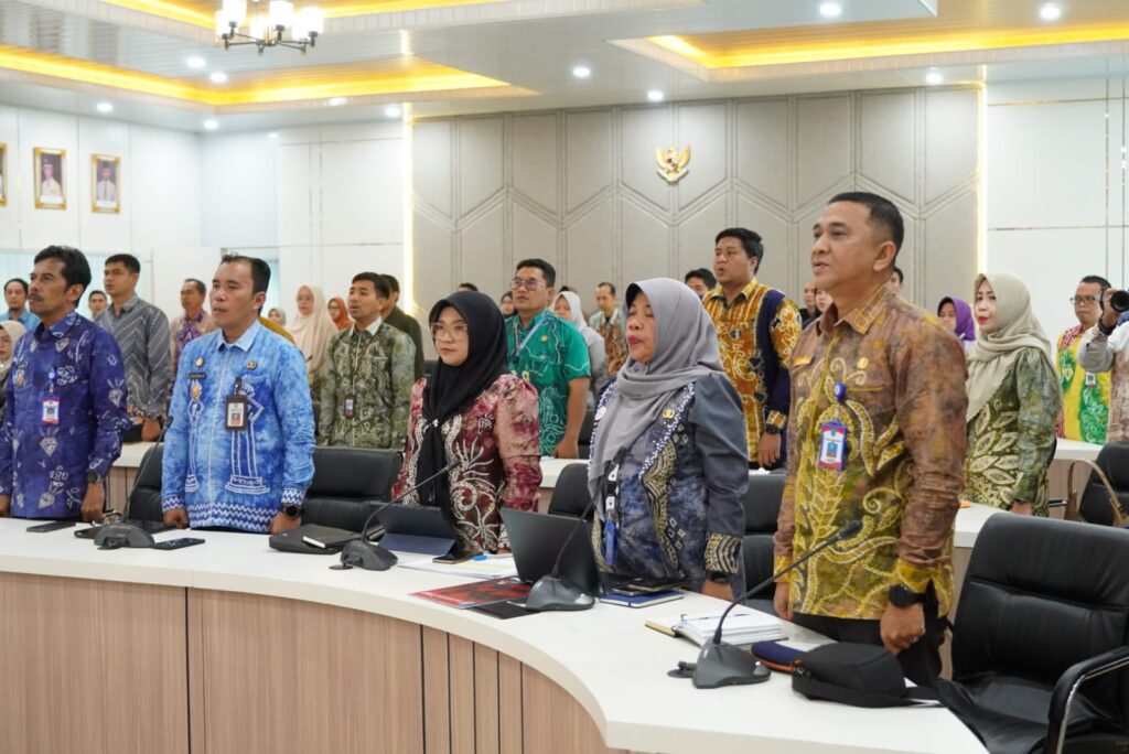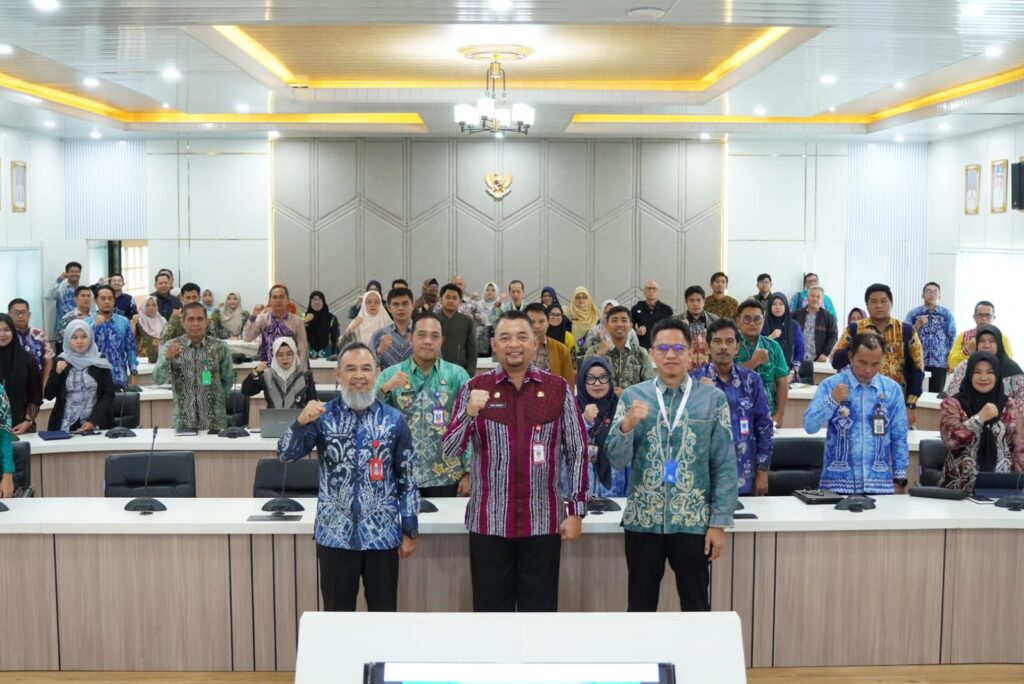 KANALKALIMANTAN.COM, MARTAPURA – Bupati Banjar H Saidi Mansyur yang diwakili Sekda Yudi Andrea membuka Rapat Evaluasi Pembangunan Daerah Tahun Anggaran 2025, di Aula Barakat, Martapura, Kamis (19/2/2026) sore.