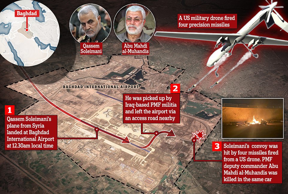 Jenderal Qassim Soleimani yang merupakan pemimpin dari Quds Force selaku satuan pasukan khusus yang dimiliki Revolutionary Guards (salah satu bagian dari pasukan bersenjata Iran), dikabarkan tewas dalam serangan udara yang diluncurkan oleh AS di Baghdad.