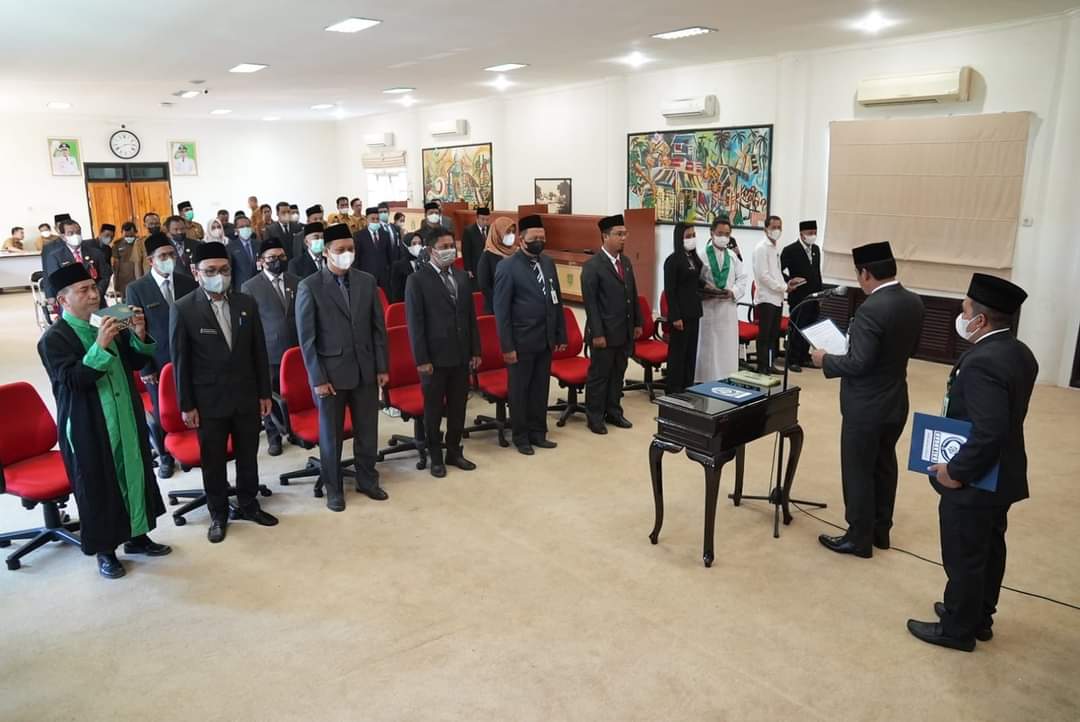 Bupati Balangan didampingi Sekda H Sutikno dan Kepala Badan Kepegawaian dan Pengembangan Sumber Daya Manusia (BKPSDM) Sufriannor, mengambil sumpah pejabat yang diangkat maupun dipindahkan.