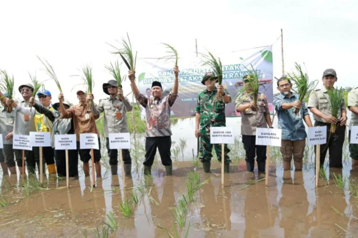 Hal itu disampaikan Bupati dalam kegiatan Gerakan Tanam Serempak program Cetak Sawah Rakyat (CSR) 2026 yang digelar Pemerintah Kabupaten Barito Kuala (Pemkab Batola) bersama Kementerian Pertanian di Desa Puntik Dalam, Kecamatan Mandastana.